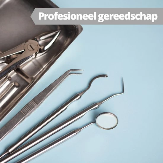 Met maar liefst 6 verschillende spiegels, haakjes en tangetjes heb jij alles wat een tandarts ook heeft.