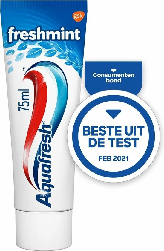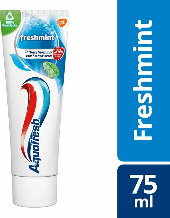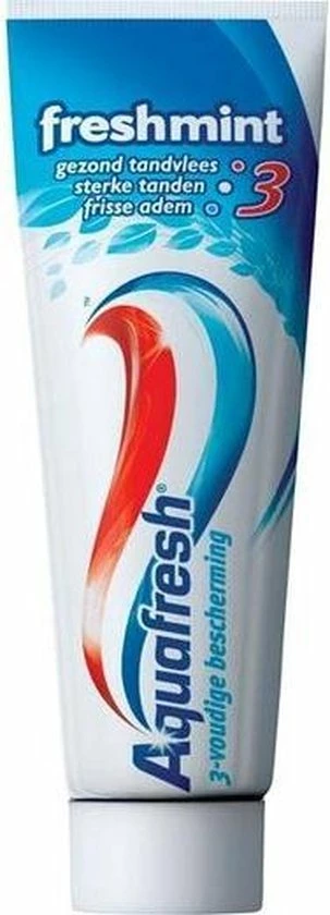 Aquafresh Freshmint is een 3-in-1 tandpasta voor het hele gezin met een frisse smaak en Suikerzuur Bescherming*, die beschermt tegen gaatjes, tandvleesproblemen, tandplak en tandsteen opbouw*.