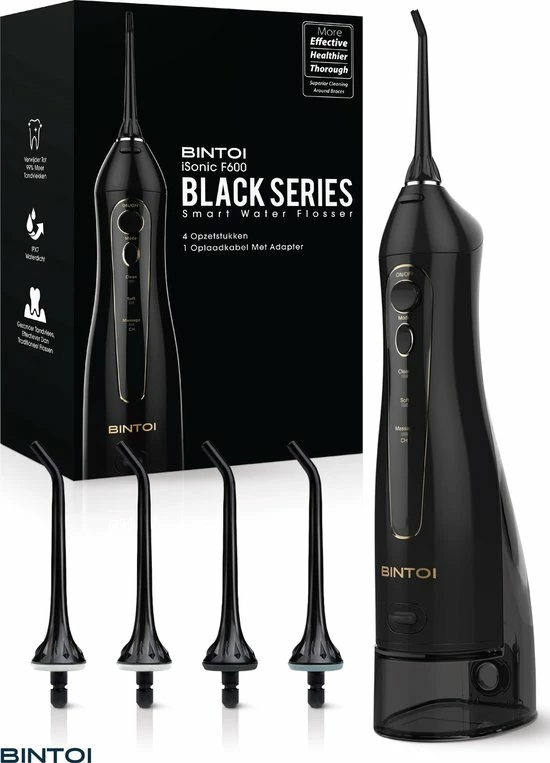 De Bintoi iSonic F600 waterflosser heeft een IPX7 waterproof rating. Dat houdt in dat de waterflosser zonder problemen ondergedompeld kan worden in een bak water van max. 1 meter diep. Je kunt de Bintoi waterflosser dus veilig onder de douche of in bad gebruiken!