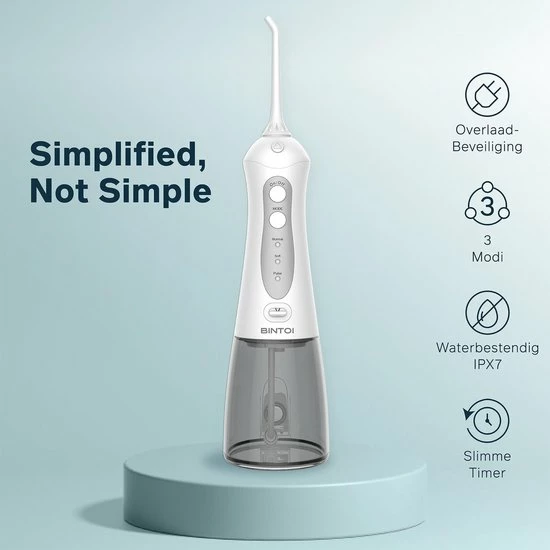 De Bintoi F500 waterflosser heeft een IPX7 waterproof rating. Dat houdt in dat de waterflosser zonder problemen ondergedompeld kan worden in een bak water van max. 1 meter diep. Je kunt de Bintoi waterflosser dus veilig onder de douche of in bad gebruiken!