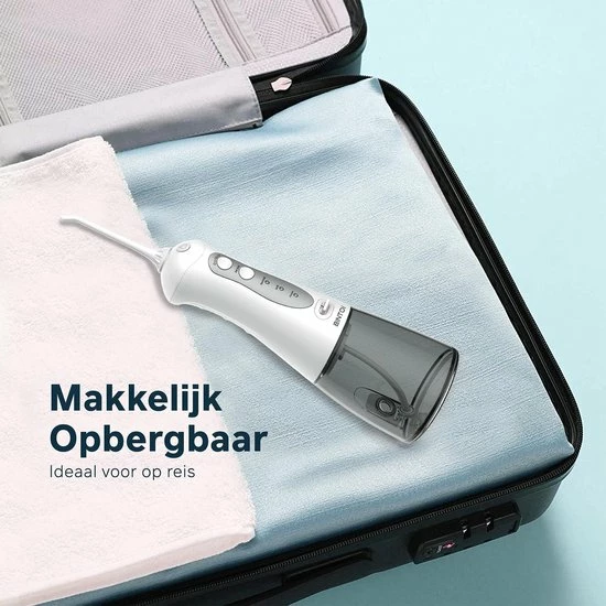 Het gebit schoonhouden achter of tussen de tanden is vaak een uitdaging, zeker als je een beugel hebt. Met deze elektrische waterflosser kun je al die lastige hoekjes en gaatjes goed schoonmaken. Met één beurt haal je 99.99% van alle tandplak weg!