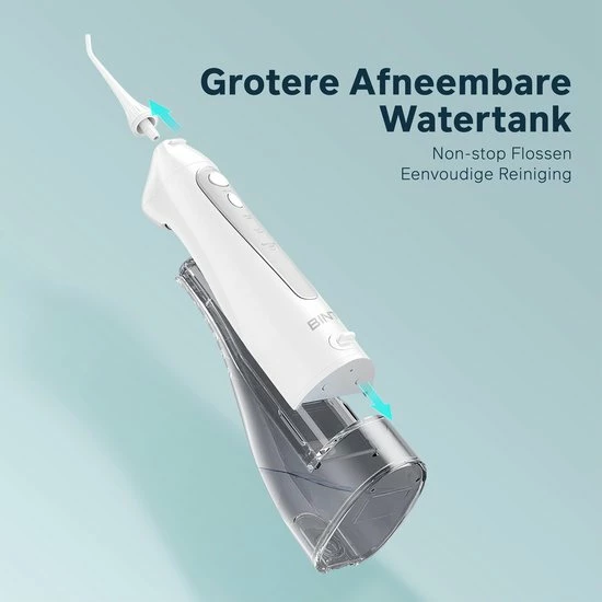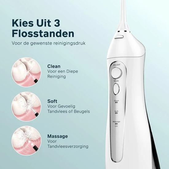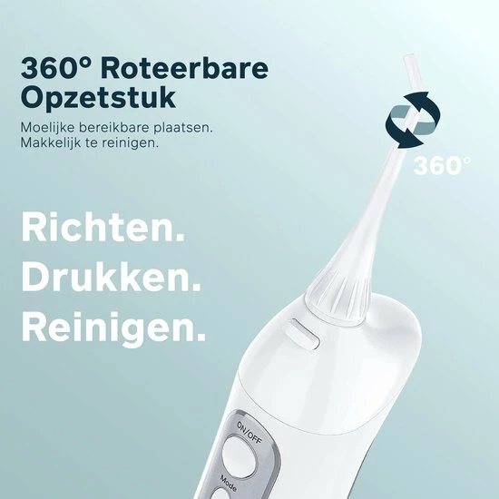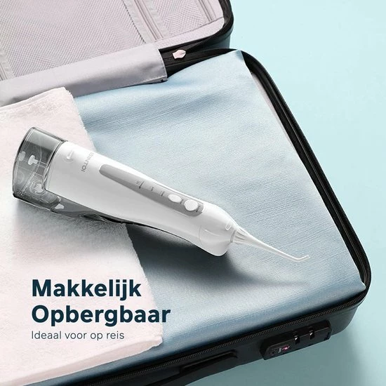 Het gebit schoonhouden achter of tussen de tanden is vaak een uitdaging, zeker als je een beugel hebt. Met deze elektrische waterflosser kun je al die lastige hoekjes en gaatjes goed schoonmaken. Met ??n beurt haal je 99.99% van alle tandplak weg!