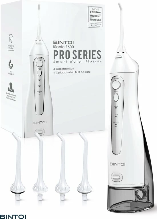 Met de Bintoi iSonic F600 reinig je makkelijker en sneller tussen de tanden. In tegenstelling tot flossen met flosdraad kun je tussen de tanden reinigen zonder veel gedoe en zonder dat je armspieren eronder lijden. Het is de effectieve, en snelle oplossing voor gezonder tandvlees die niet inlevert op kwaliteit. Vul het apparaat met water, richt de spuitkop op de ruimte tussen de tanden en verwijder de tandplak binnen 60 seconden ? met gezonder tandvlees als resultaat!