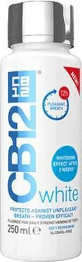CB12 zorgt voor een goede adem. Slechte adem wordt in 90% van de gevallen veroorzaakt door stinkende zwavelgassen in de mond. Zwavelgas wordt veroorzaakt door bacteri?n in de mond en ruikt onprettig. De formule van CB12 is uniek en gepatenteerd. CB12 gaat 12 uur lang stinkende zwavelgassen in de mond tegen en zorgt voor een goede adem