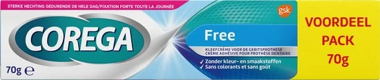 * Corega Free is een kleefcr?me voor het kunstgebit