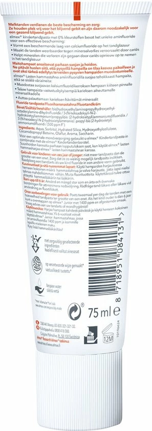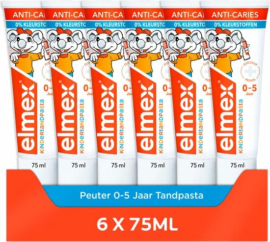 De elmex® Anti-Cariës Peuter 0-5 jaar kindertandpasta beschermt het melkgebit tegen gaatjes. Goede mondverzorging begint bij het eerste tandje. De elmex Anti-Cariës Peuter 0-5 jaar tandpasta verzorgt dagelijks de melktandjes en het zachte tandvlees van je kind. De elmex Anti-Cariës Peuter 0-5 jaar tandpasta beschermt het nog niet volledig ontwikkelde tandglazuur tegen gaatjes en heeft een milde smaak. Het helpt om een calciumfluoride laag op het tandglazuur op te bouwen, maakt tanden beter bestand tegen cariës gerelateerd mineraalverlies en helpt tanden remineraliseren.