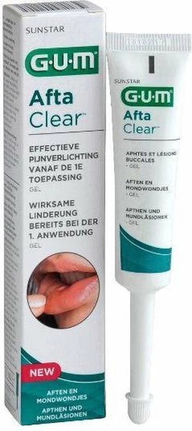 De GUM AftaClear Mondgel, zorgt voor een directe en langdurige pijnverlichting. Uitstekend geschikt voor lokale applicatie bij aften, brandblaartjes, irritaties van het gebit en andere mondwondjes.
