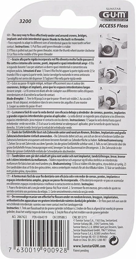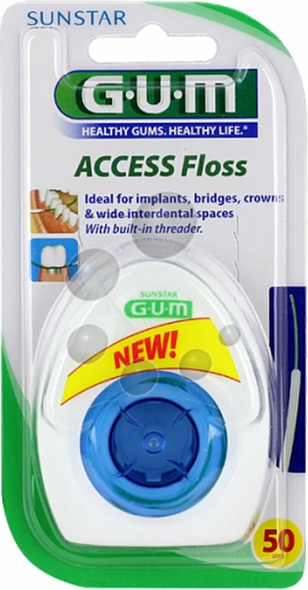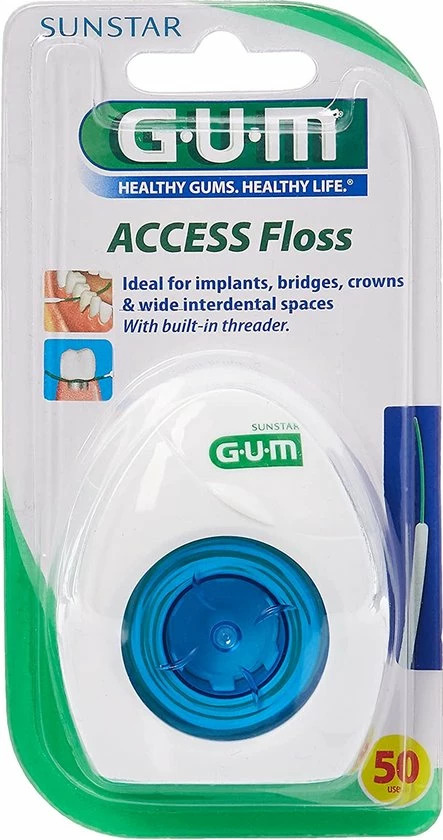Ideaal voor een zorgvuldige en grondige reiniging van implantaten, bruggen, kronen en brede tussenruimtes. Met de GUM Floss access heb je geen last van verwarring van de draden, ze zijn eenvoudig te verwijderen en je werkt schoon en hygi?nisch per stuk.