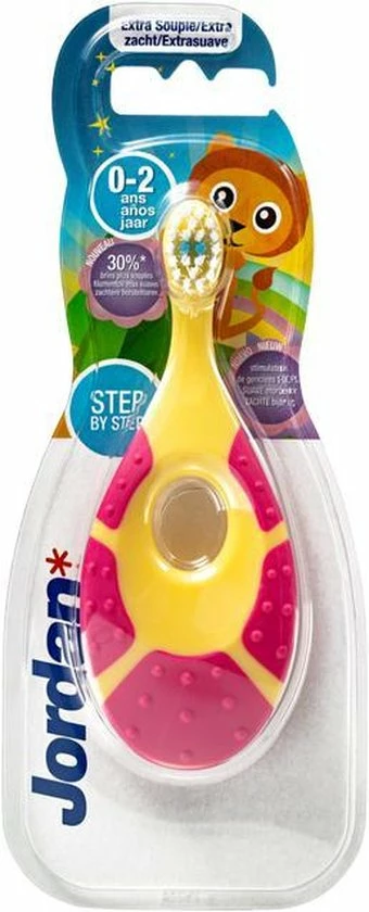 Jordan Tandenborstel Baby STEP 1 (0-2 JAAR) 4 Stuks Geel /Roze