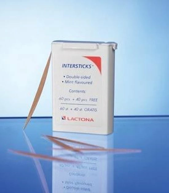 De Intersticks zijn dunne, driehoekig gepolijste tandenstokers van zacht berkenhout met frisse mintsmaak. De tandenstokers zijn dubbelzijdig te gebruiken bij grotere interdentale tussenruimten. De sticks zijn verpakt per 100 stuks in een handige meeneem-verpakking.