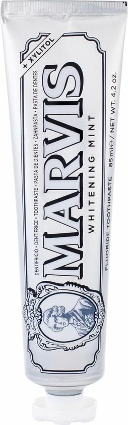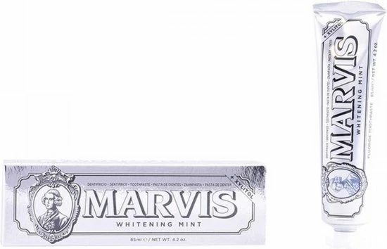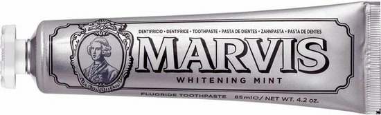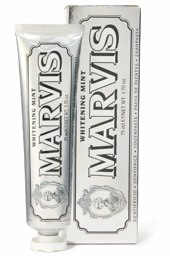 De Whitening Mint tandpasta van Marvis bevat speciale ingredinten die vlekken en verkleuringen verwijdert, dat voor een mooie en prachtige glimlach zorgt. De tandpasta heeft een scherpe muntsmaak voor een aangename en blijvende frisheid.