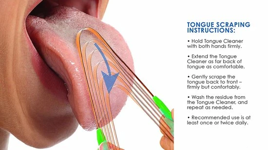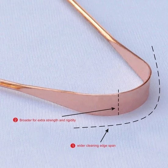 Deze koperen tongschraper geproduceert in Indi? draagt bij aan een goede en gezonde mondhygi?ne.Weg met die grijze aanslag op je tong die duid op bacteri?n die voor veel narigheid kunnen zorgen.Narigheden zoals tandvleesontsteking en abcessen die nog pijnlijker zijn dan tandpijn.Het gebruik van de tongschraper is heel simpel en snel,3 maal over de tong schrapen en het is klaar,na verloop van tijd gaat je tong er al gezonder uitzien en zal je adem reuklozer worden met de dag.