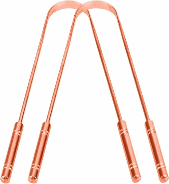 Merkloos Originele Koperen Tongschraper (2 Stuks) Uit India.(Verzendkosten Inbegrepen)