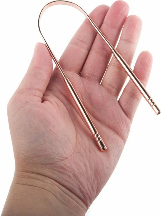 De tongschraper die wij aanbieden is gemaakt van koper, gaat heel lang mee en is gemakkelijk in gebruik. Pak de uiteinden van de reiniger met beide handen stevig vast en trek de voorgebogen reiniger met het middelste gedeelte over de tong. Spoel steeds weer af onder de lopende kraan. Gewoonlijk is drie maal schrapen voldoende. Ga er niet eindeloos mee door! Spoel de mond goed na, eventueel met een mondwater op natuurbasis.