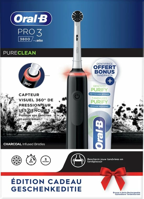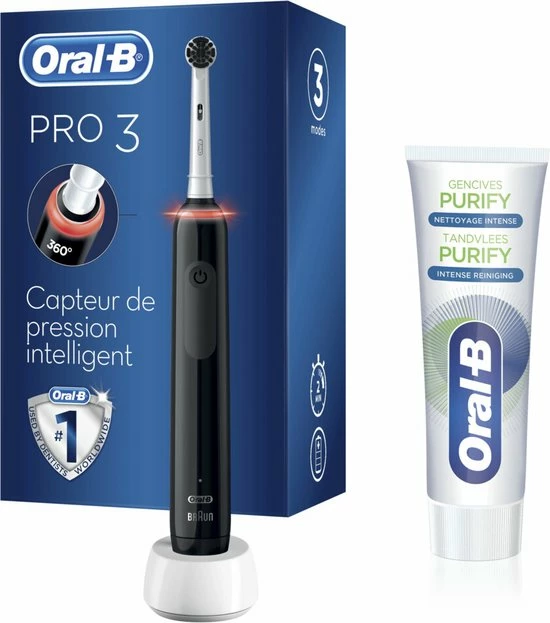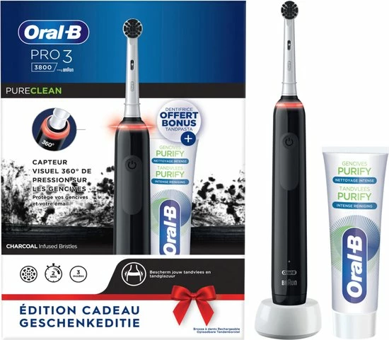 Oral-B Pro 3 – 3800 – Zwarte Elektrische Tandenborstel + 1 tandpasta