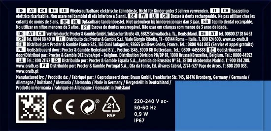 | Belangrijke extra opties | Timer, Poetsdruksensor, Batterij-indicator, Werkt, met, mobiele, app |