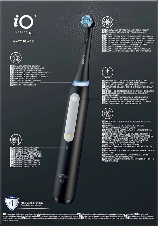 De iO 4 elektrische tandenborstel is voorzien van de beste technologie van Oral-B en combineert een door tandartsen ge?nspireerde ronde borstelkop met micro-vibrerende borstelharen voor een professioneel reinigend gevoel thuis. De slimme poetsdruksensor helpt voorkomen dat u te hard of te zacht poetst om uw tandvlees beter te beschermen. Gum Guard waarschuwt u als u te veel druk op uw tanden uitoefent. Vervang uw Oral-B iO opzetborstel elke 3 maanden voor de beste resultaten.