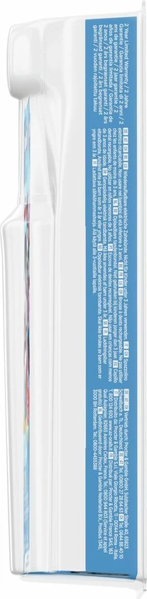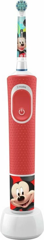 Met de Oral-B Kids elektrische tandenborstel voor kinderen vanaf 3 jaar kunnen kinderen plezier beleven aan Mickey ?n profiteren van de milde, effectieve reiniging van een door tandartsen aanbevolen tandenborstel Oral-B. Met een unieke, kindvriendelijke gevoelige modus reinigt deze borstel de tanden van kinderen voorzichtig. Hij verwijdert meer tandplak dan een gewone manuele tandenborstel. Er zitten vier leuke Mickey-stickers bij om het handvat mooier te maken.