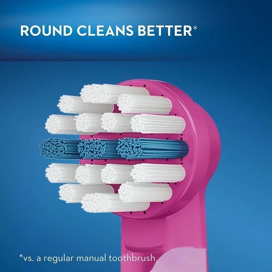 De roterende opzetborstel heeft extra zachte borstelharen, zodat je kind volledig schone tanden krijgt terwijl hij/zij goede mondverzorgingsgewoontes aanleert.