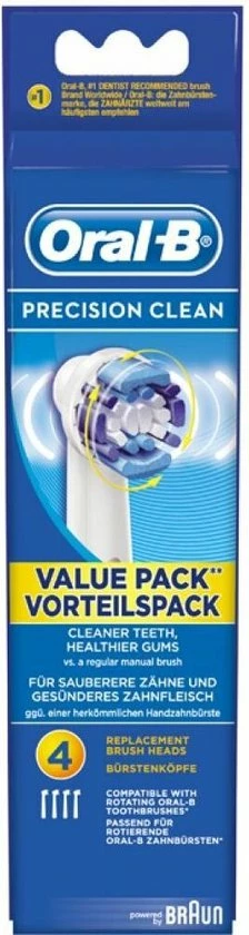 Het ontwerp van de opzetborstel van de Oral-B Precision Clean is ge?nspireerd op de superieure reinigingskracht van professionele tandheelkundige instrumenten. De vorm van de borstelkop zorgt ervoor dat de borstelhaartjes elke tand omvatten en individueel reinigen.
