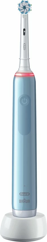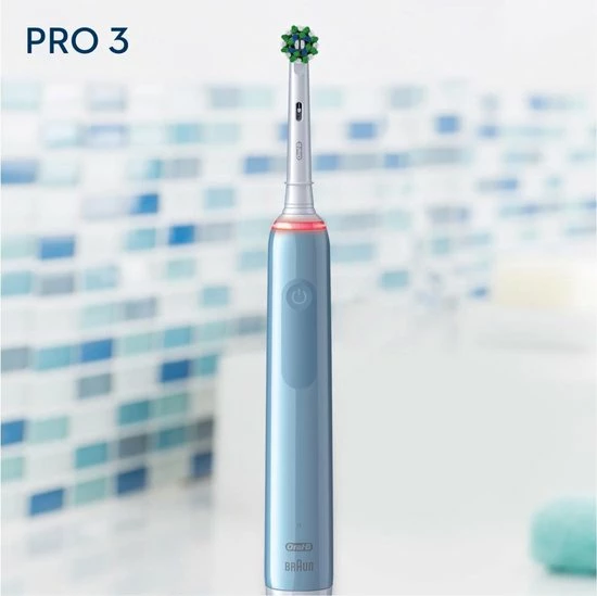 Ervaar de Oral-B Pro 3 van het nummer ??n meest gebruikte tandborstelmerk door tandartsen wereldwijd. Het slanke handvat van de Pro 3 elektrische tandenborstel helpt u te poetsen zoals uw tandarts dat aanbeveelt: Het helpt u 2 minuten poetsen met de professionele timer en meldt u om de 30 seconden dat u een andere zone moet poetsen. U beweegt de borstel gewoon in uw mond en de unieke, ronde borstelkop van Oral-B doet de rest. Dankzij borstelharen met houtskool reinigt deze 100% meer tandplak dan een gewone manuele tandenborstel. Dat is niet alles, de tandenborstel helpt u ook uw gevoelige tandvlees te beschermen met de 360 ? poetsdrukcontrole die de poetssnelheid vermindert en u waarschuwt als u te hard poetst. De Oral-B Pro 3 tandenborstel is onmisbaar voor iedereen die naar een elektrische tandenborstel wil overschakelen en zijn mondgezondheid wil verbeteren.