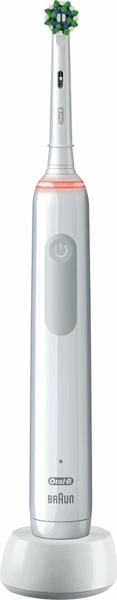 Ervaar de Oral-B Pro 3 van het nummer ??n meest gebruikte tandborstelmerk door tandartsen wereldwijd. Het slanke handvat van de Pro 3 elektrische tandenborstel helpt u te poetsen zoals uw tandarts dat aanbeveelt: Het helpt u 2 minuten poetsen met de professionele timer en meldt u om de 30 seconden dat u een andere zone moet poetsen. U beweegt de borstel gewoon in uw mond en de unieke, ronde borstelkop van Oral-B doet de rest. Hij verwijdert tot 100% meer tandplak dan een gewone manuele tandenborstel voor gezonder tandvlees en maakt uw glimlach witter vanaf de eerste poetsdag door oppervlakkige verkleuringen te verwijderen. Dat is niet alles, de tandenborstel helpt u ook uw gevoelige tandvlees te beschermen met de 360 ? poetsdrukcontrole die de poetssnelheid vermindert en u waarschuwt als u te hard poetst. De Oral-B Pro 3 tandenborstel is onmisbaar voor iedereen die naar een elektrische tandenborstel wil overschakelen en zijn mondgezondheid wil verbeteren.