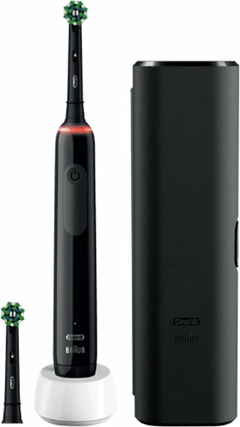 Ervaar de Oral-B Pro 3 van het nummer ??n meest gebruikte tandborstelmerk door tandartsen wereldwijd. Het slanke handvat van de Pro 3 elektrische tandenborstel helpt u te poetsen zoals uw tandarts dat aanbeveelt: Het helpt u 2 minuten poetsen met de professionele timer en meldt u om de 30 seconden dat u een andere zone moet poetsen. U beweegt de borstel gewoon in uw mond en de unieke, ronde borstelkop van Oral-B doet de rest. Hij verwijdert tot 100% meer tandplak dan een gewone manuele tandenborstel voor gezonder tandvlees en maakt uw glimlach witter vanaf de eerste poetsdag door oppervlakkige verkleuringen te verwijderen. Dat is niet alles, de tandenborstel helpt u ook uw gevoelige tandvlees te beschermen met de 360 ? poetsdrukcontrole die de poetssnelheid vermindert en u waarschuwt als u te hard poetst. De Oral-B Pro 3 tandenborstel is onmisbaar voor iedereen die naar een elektrische tandenborstel wil overschakelen en zijn mondgezondheid wil verbeteren.