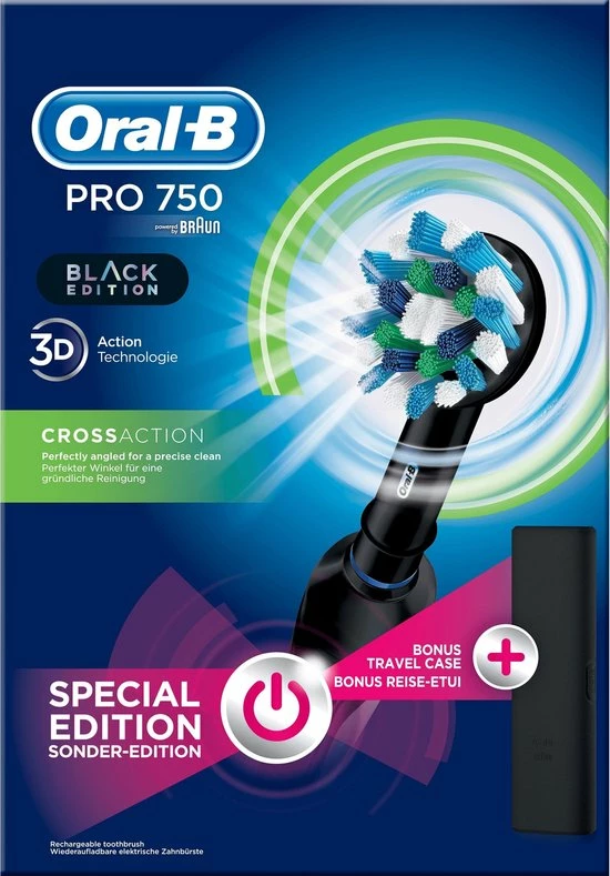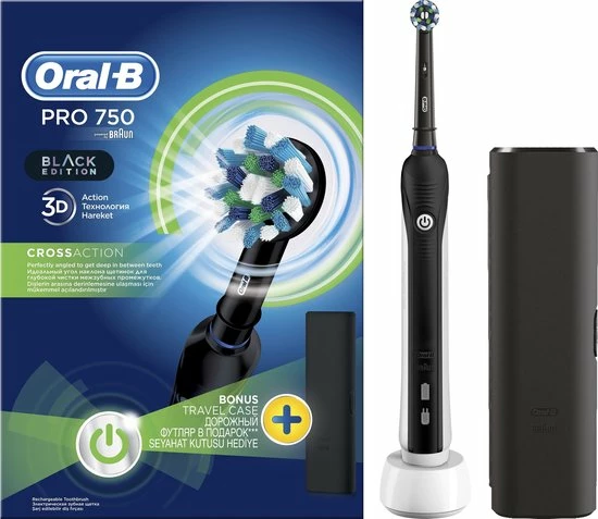 De Oral-B Pro 750 met professionele timer is een geweldige tandenborstel voor iedereen die naar een elektrische tandenborstel wil overschakelen. Geen wonder dat Oral-B het nummer ??n aanbevolen merk door tandartsen wereldwijd is. Past op de volgende vervangende opzetborstels: CrossAction, 3D White, Sensi Ultrathin, Sensitive Clean, Precision Clean, Floss Action, Tri Zone, Dual Clean, Power Tip, Ortho Care.