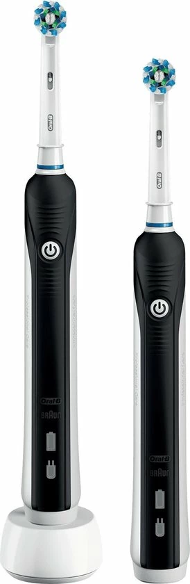 - Bevat: 2 zwarte handvatten met oplader, 2 opzetborstels