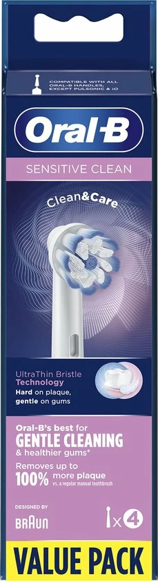 De Sensitive Clean opzetborstel is ge?nspireerd op professionele tandheelkundige instrumenten en ontworpen in een ronde bladvorm met zachte, ultradunne borstelharen voor een zachte poetservaring van Oral-B en gezonder tandvlees.