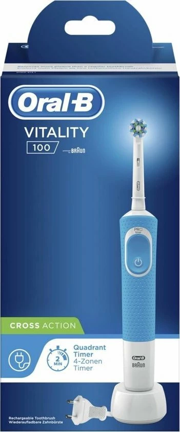 De Oral-B Vitality oplaadbare elektrische tandenborstel biedt een klinisch bewezen superieure reiniging in vergelijking met een gewone manuele tandenborstel. De ge?ntegreerde timer op het handvat helpt u 2 minuten te poetsen zoals door tandartsen wordt aangeraden. Bovendien wordt deze elektrische tandenborstel aangeboden door Oral-B, het merk dat het meest door tandartsen wereldwijd wordt gebruikt.