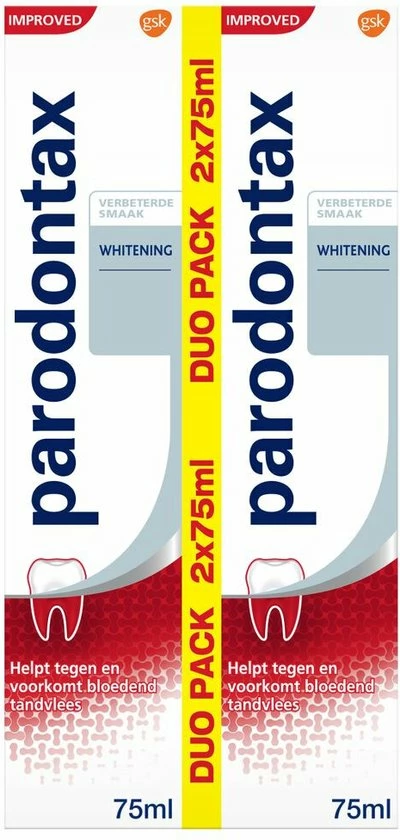 Parodontax is speciaal ontwikkeld om tandplak te verwijderen. Het werkt doordat het de opbouw van tandplak tegengaat. Parodontax Whitening biedt dagelijkse reiniging en helpt de natuurlijke witheid van tanden te behouden door het voorzichtig verwijderen van oppervlakkige vlekken. Parodontax bevat fluoride, en is dus geschikt voor dagelijks gebruik, en helpt je tandvlees gezond en tanden sterk te houden. Nu met verbeterde smaak.