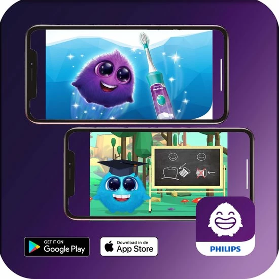 Met de Philips Sonicare For Kids-tandenborstel en app kunnen kinderen leren hoe ze goed zelfstandig kunnen poetsen. De app synchroniseert met de sonische tandenborstel van jouw kind via Bluetooth, laat de juiste poetstechieken zien en volgt de prestaties. Kinderen kunnen zien hoe goed ze poetsen en fantastische beloningen verdienen. Educatief en effectief; 98% van de ondervraagde ouders geeft aan dat het gemakkelijker is om de kinderen langer en beter te laten poetsen. Het is een leuke manier om kinderen goede