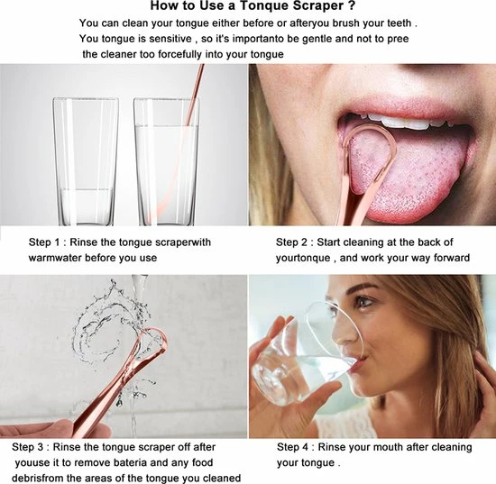 Bij het eten blijven etensresten achter op je tong. Deze resten zorgen voor bacteri?n die een slechte adem veroorzaken. Door het oppervlak van je tong in de ochtend schoon te maken verwijder je de etensresten en bacteri?n. Een slechte adem hebben is dan verleden tijd.