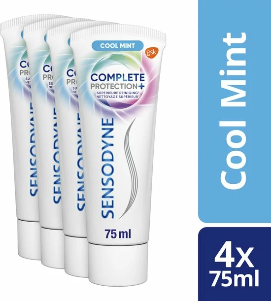 Alles-in-1 dagelijkse verzorging bij gevoelige tanden. Vezorging bij gevoelige tanden mag niet ten koste gaan van andere belangrijke mondverzorgingsvoordelen. Nieuwe Sensodyne Complete Protection + dagelijkse tandpasta biedt meerdere mondverzorgingsvoordelen samen met klinisch bewezen bescherming tegen gevoeligheid. Cool Mint voor een verfrissend en blijvend verkoelend gevoel. Verfrissende dubbele munt met een vleugje aromatische kruiden. Unieke formule met Advanced Cleaning System voor Superieure Reiniging*.
