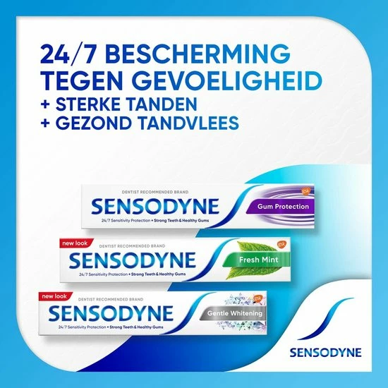 Sensodyne Fresh Mint dagelijkse tandpasta geeft klinisch bewezen verlichting en dagelijkse bescherming bij gevoelige tanden. 2 x per dag poetsen met Sensodyne Fresh Mint dagelijkse tandpasta zorgt voor een 24/7 bescherming bij gevoelige tanden en een effectieve reiniging. Het bevat fluoride, dat tandglazuur versterkt en helpt beschermen tegen cari?s. Sensodyne Fresh Mint dagelijkse tandpasta heeft een frisse muntsmaak.
