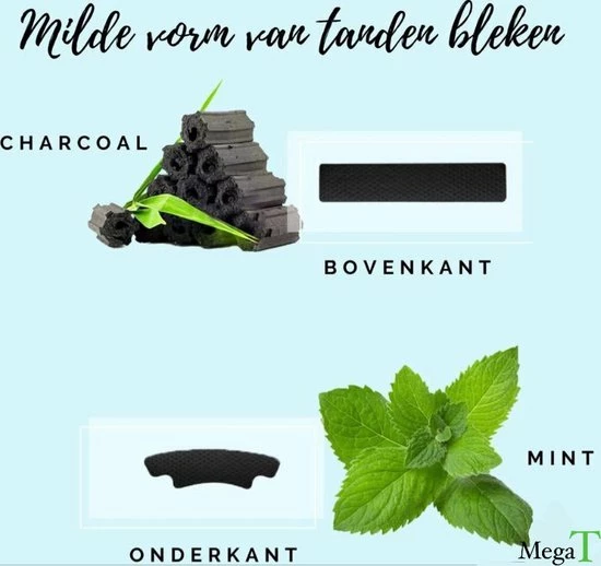 Smilekit Whitening strips zijn niet zomaar een zwartkleurige tanden strips. Na slechts 10 minuten zie je al resultaat! Onze whitening strips bevatten een unieke formule, het bestaat grotendeels uit natuurlijke ingrediënt en houtskool gemaakt uit de hoogste kwaliteit. Daarnaast, in tegenstelling tot vele andere merken vegan-friendly en zit er in MegaT geen waterstofperoxide, hierdoor kan jij zorgeloos en veilig je tanden bleken zonder last te krijgen van gevoelige tanden. een stralend wit gebit mag niet ten kosten gaan van een gezond gebit. Zeg maar Dag tegen tand verkleuring, MegaT zorgen voor een stralend gebit!