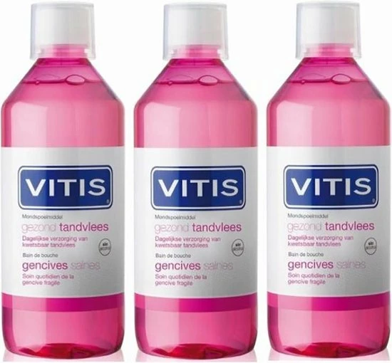 - Geadviseerd wordt Vitis Gezond Tandvlees Mondspoelmiddel te combineren met Vitis Gezond Tandvlees Tandpasta voor een maximaal resultaat