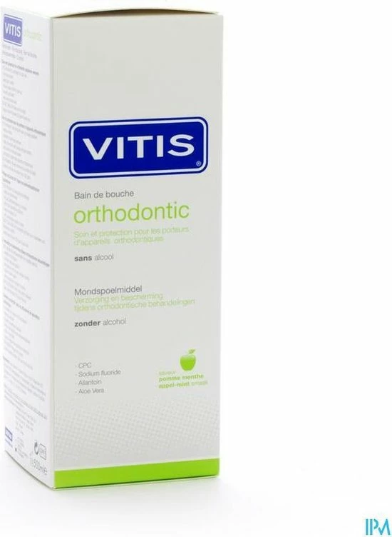 Vitis Orthodontic mondspoelmiddel voor dagelijks gebruik: Versterkt het tandglazuur. Houdt het tandvlees gezond. Vermindert vorming van tandplak. Voorkomt slechte adem.