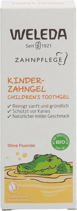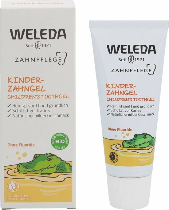 Weleda Kindertandpasta is speciaal gemaakt voor het kwetsbare melkgebit van baby?s en kinderen. Weleda tandpasta is vrij van fluoride, bevat enkel natuurlijke ingredi?nten en is daarom niet schadelijk wanneer je kindje de tandpasta doorslikt. De tandpasta met biologisch Calendula-extract reinigt het melkgebit op milde wijze en beschermt tegen gaatjes.
