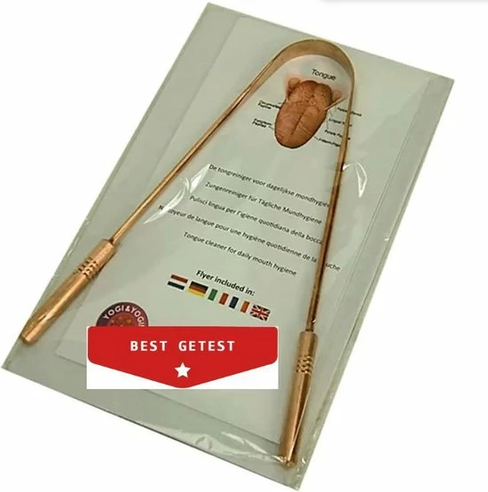 De tongschraper die wij aanbieden is gemaakt van koper, gaat heel lang mee en is gemakkelijk in gebruik. Pak de uiteinden van de reiniger met beide handen stevig vast en trek de voorgebogen reiniger met het middelste gedeelte over de tong. Spoel steeds weer af onder de lopende kraan. Gewoonlijk is drie maal schrapen voldoende. Ga er niet eindeloos mee door! Spoel de mond goed na, eventueel met een mondwater op natuurbasis.